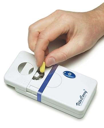 Frantuma Pillole Elettrico VitaCarry Frantumapillole. PORTA TAGLIA FRANTUMA PILLOLE PASTIGLIE COMPRESSE PILL BOSS TAGLIAPILLOLE. Il formato tascabile lo rende comodo da portare con se’ tutti i giorni, anche fuori casa.